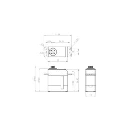 Digitální micro servo s stejnosměrným motorem a kombinace plastových a kovových převodů, 1x kuličkové ložisko, 3,1/3.9kg při 4,8/6,0V a 0,16/0,13s na 4,8/6,0V, váha 15,8g, 22,8x12,0x29,4mm. Provozní…